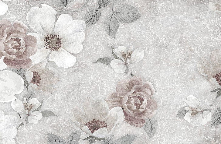 Elegant Flowers Mural. Grey Pastel Floral Art Decor UK, HD wallpaper -