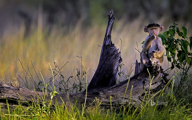Young chacma baboon in Moremi Game Reserve, Okavango Delta, Botswana, HD wallpaper -
