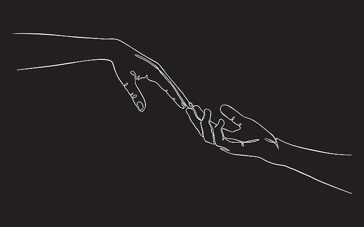 Two hands reaching out one contiguous line in a black background vector illustration, HD wallpaper -