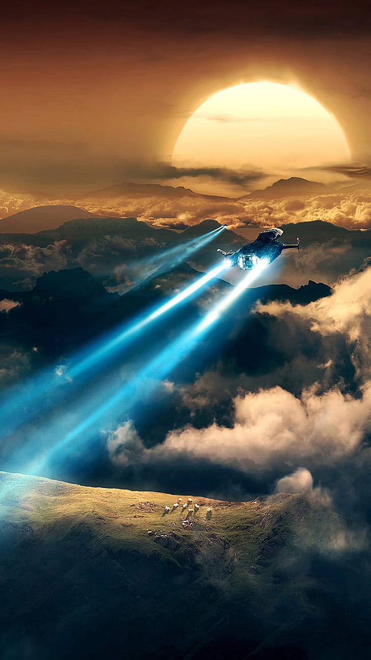 Space Flight, airplane, blue, clouds, galaxy, space, sunset, phone, HD phone wallpaper -