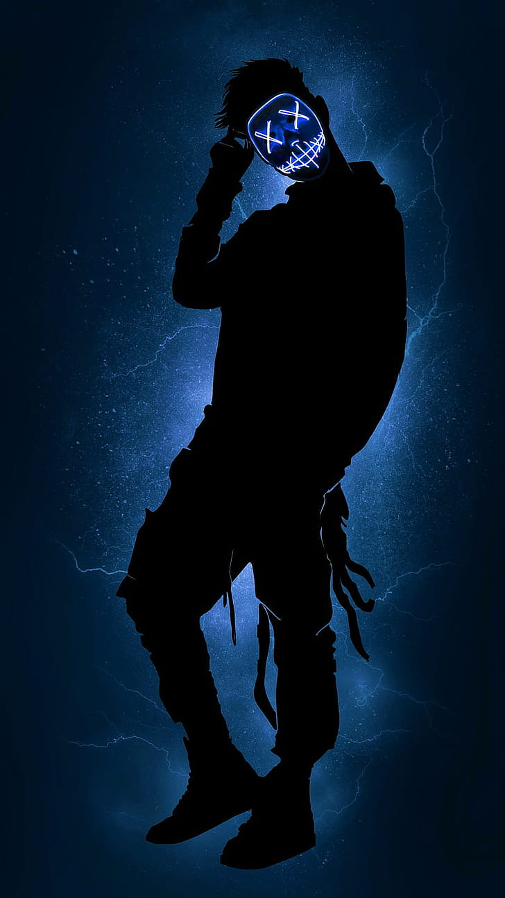 Masked man 02 anonymous, black, boy, dark, figure, guy, lightning, man, mask, phone, Boy Wearing Mask, HD phone wallpaper