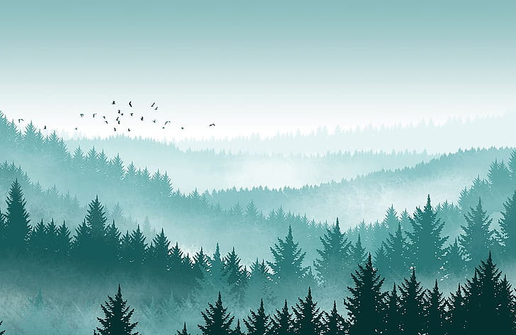 Misty Pine Forest Landscape Wall Mural, HD wallpaper -