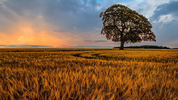 Dry, Grass, Field, Green, Tree, Branches, Silhouette, Background, Horizon, Blue, Sky, Clouds, Reflection, Sunset Nature, HD wallpaper -