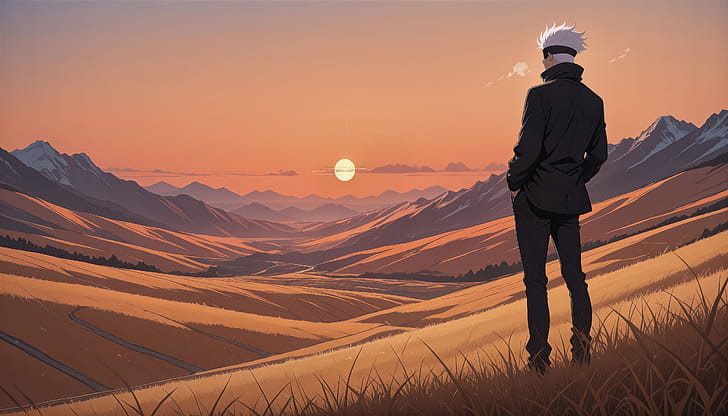 Satoru Gojo Sunset, satoru-gojo, dark, anime, artwork, digital-art, art, artist, ai, deviantart, HD wallpaper -