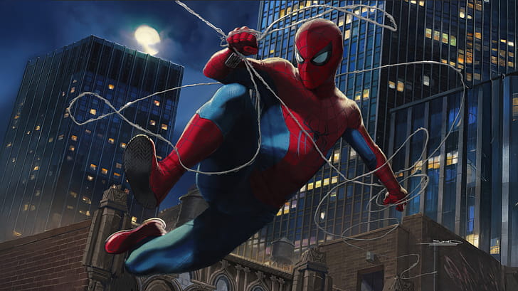 Spiderman Swinging Into Tomorrow, spiderman, superheroes, artwork, art, digital-art, HD wallpaper -
