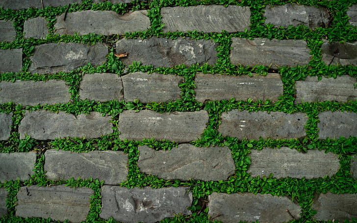 gray brick wall texture, green leaves between bricks, stone texture, old stone background for with resolution . High Quality, HD wallpaper -