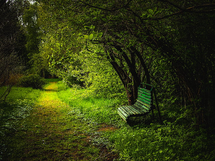 Bench, Forest, Path, HD wallpaper -