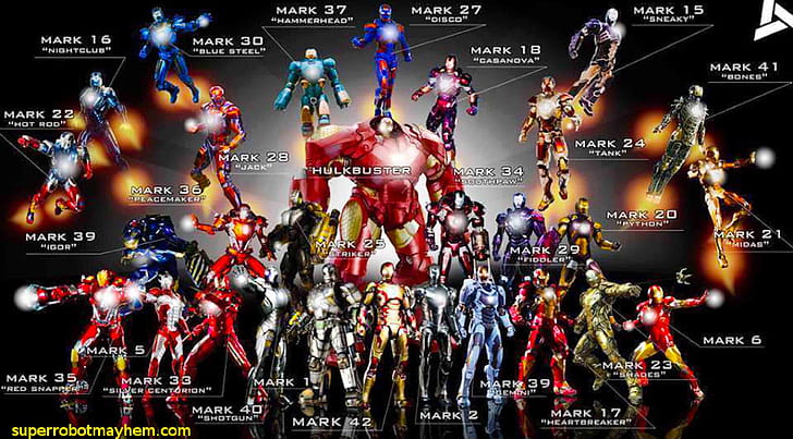 All the Iron Man Suits. Someone had asked about a I have of every Iron Man Suit. I just found it again, so I'm sharing it for them or anyone else, HD wallpaper -