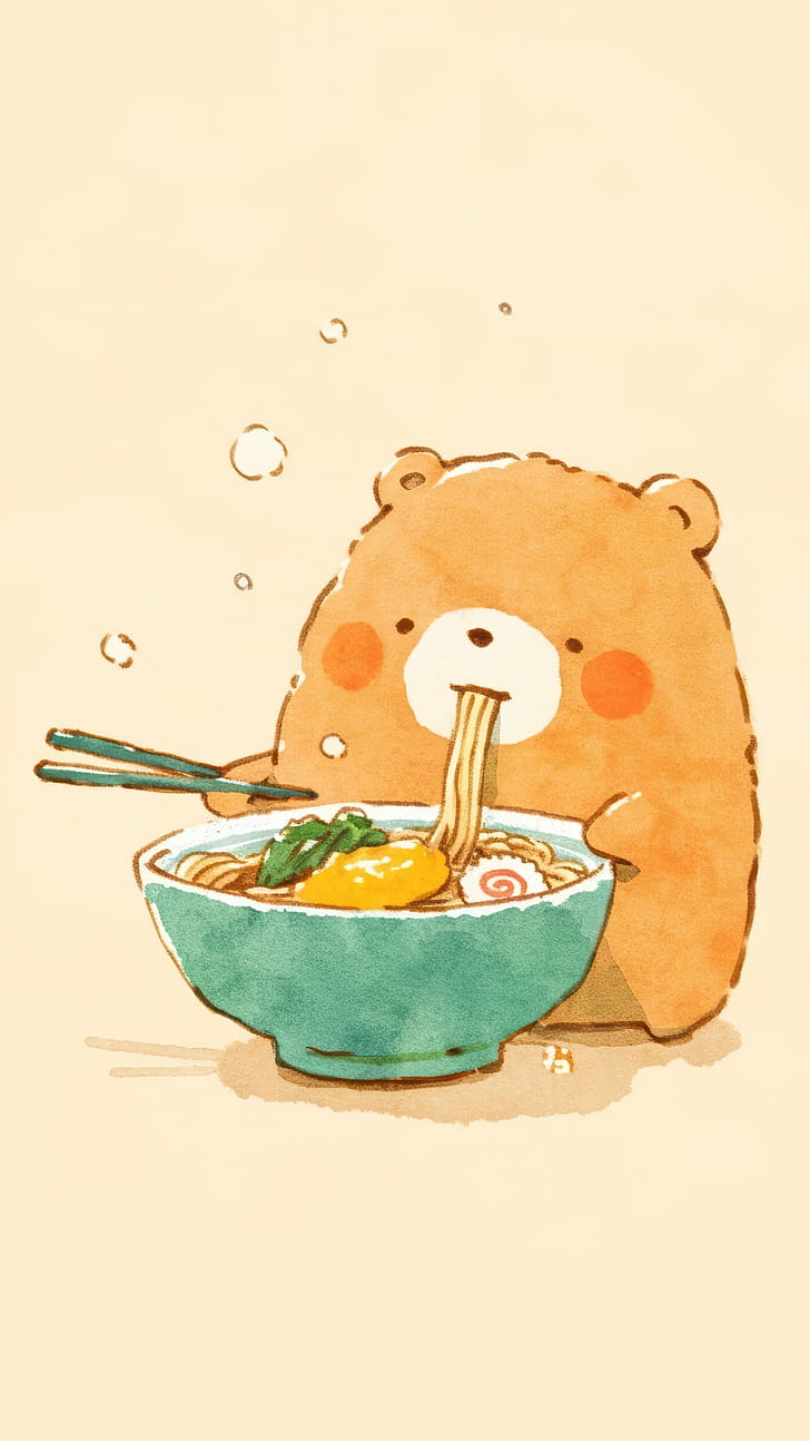 Bear Chibi Eating Ramen Anime Art iPhone Phone d, HD phone wallpaper -