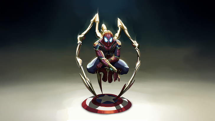Iron Spider Man Holding Captain America Shield, spiderman, superheroes, artwork, art, digital-art, deviantart, HD wallpaper -