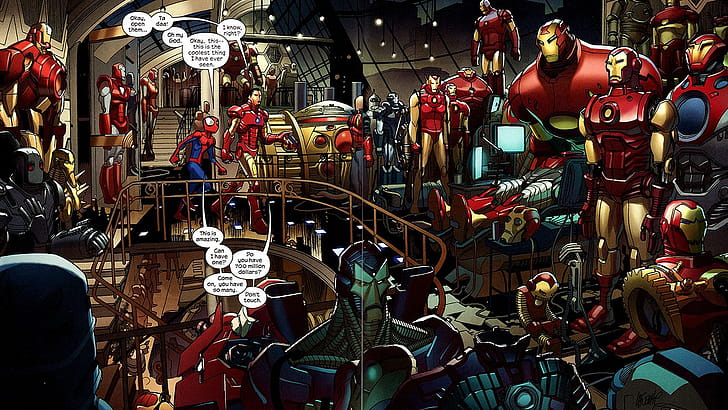 iron, Man, Comics, Tony, Stark, Marvel, Comics, Ultimate, Spider man / and Mobile Background, Iron Legion, HD wallpaper