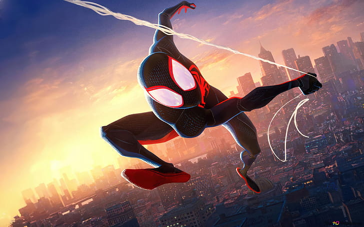 Miles Morales, Spider Man, Spider Man Into the Spider Verse, Movie, Web Swing, HD wallpaper -