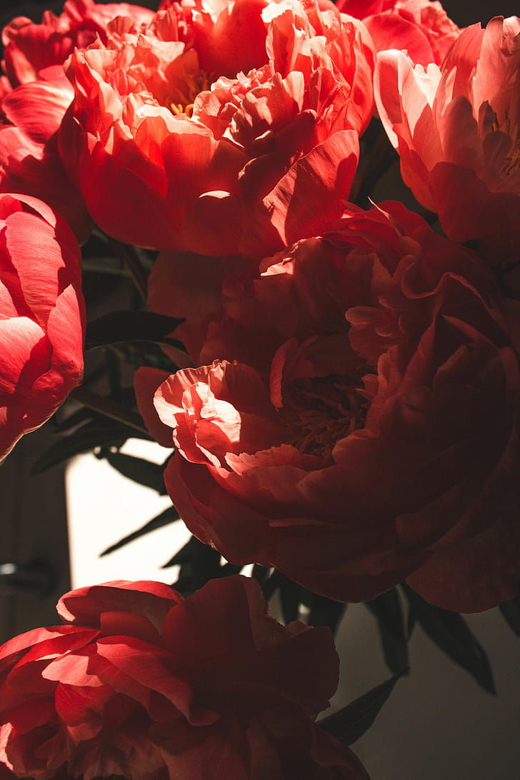 Red Peonies, Leaves, Close Up, Petals, Flowers, Phone, Red Peony, HD phone wallpaper -