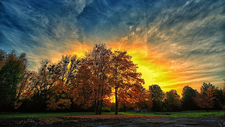 Autumn Sunset Trees, HD wallpaper -
