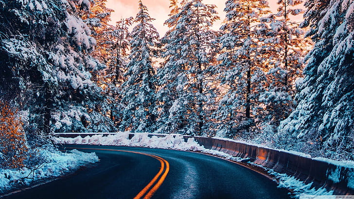 Road Nature Sweden River Forest Winter Landscape x1366, HD wallpaper -