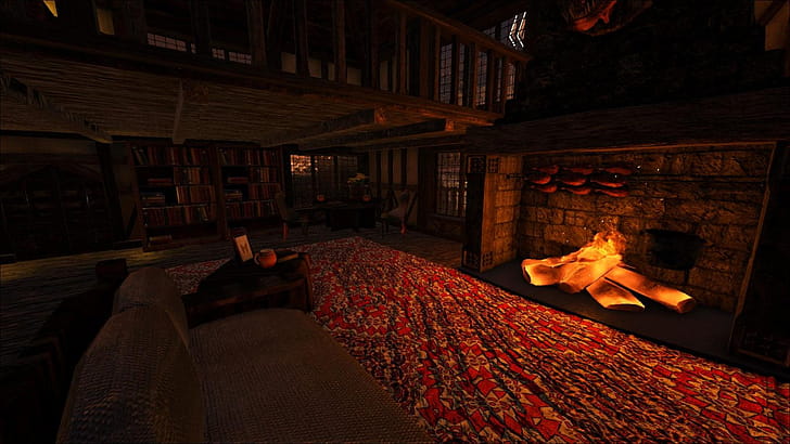 Cozy Mountain Cabin Fireplace, Cozy, Warm and Cozy, fireplace, night, living room, HD wallpaper -