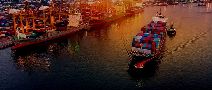 / sunset, nature, industry, reflection, export, transportation system, nautical vessel, container, harbour, harbor, outdoors, cargo, sea, import, water, horizon over water, HD wallpaper -