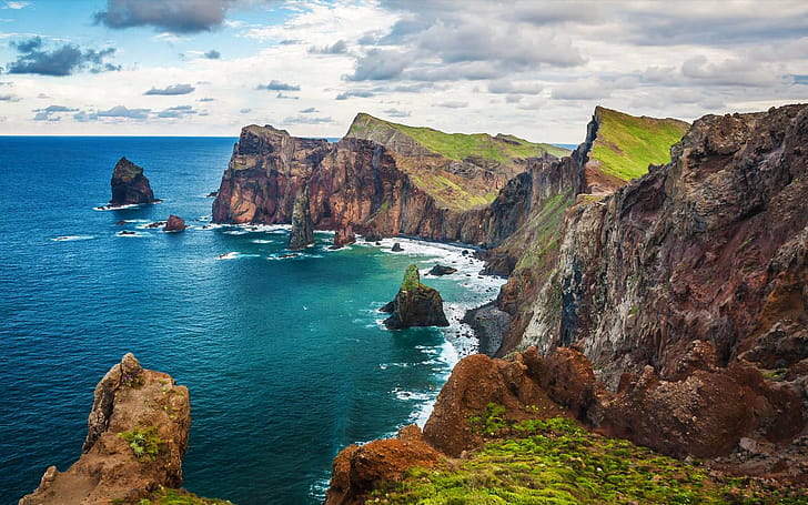 Amazing seashore view with colorful cliffs, Seixal, Madeira Island, HD wallpaper -