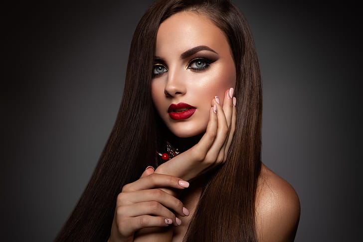 Brown haired Modelling Makeup Beautiful Face Hair, HD wallpaper -